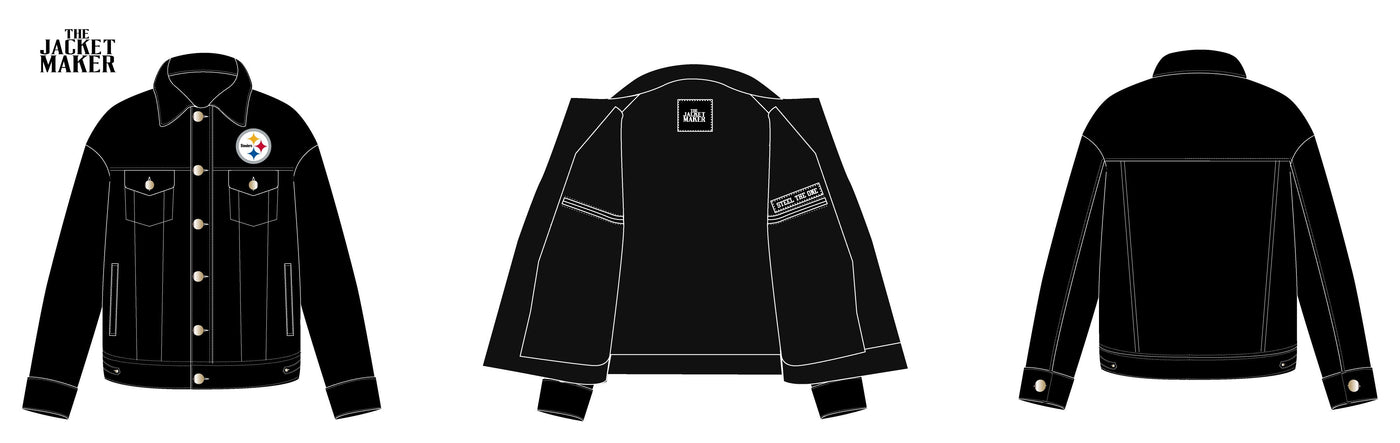 Eddie Black Oversized Denim Trucker Jacket with the customizations you’ve outlined: